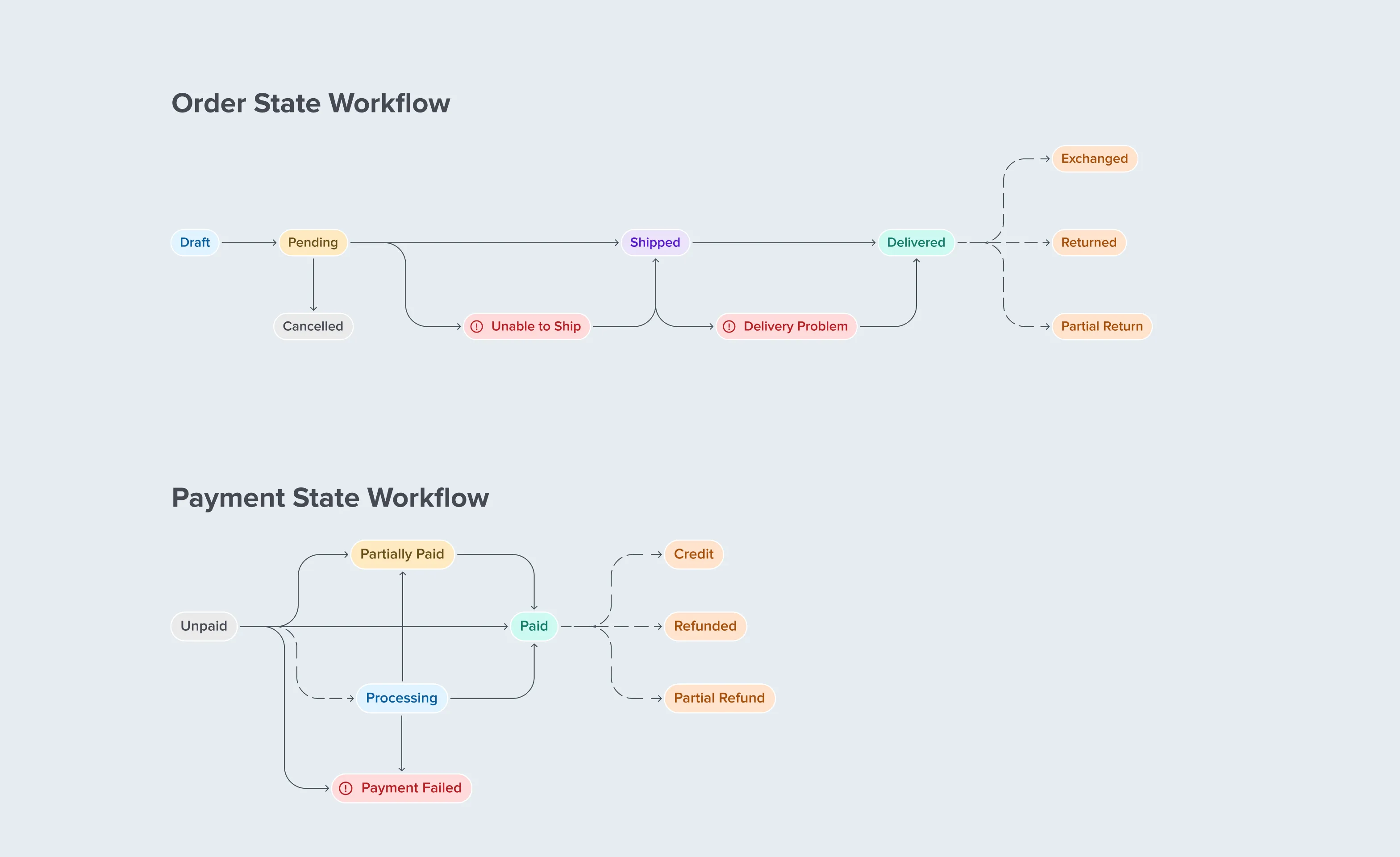 I lead a cross-functional workshop with stakeholders from the Order Fulfillment and Online Store teams to update the Order States and Names and separate out the Order States from the Payment states.